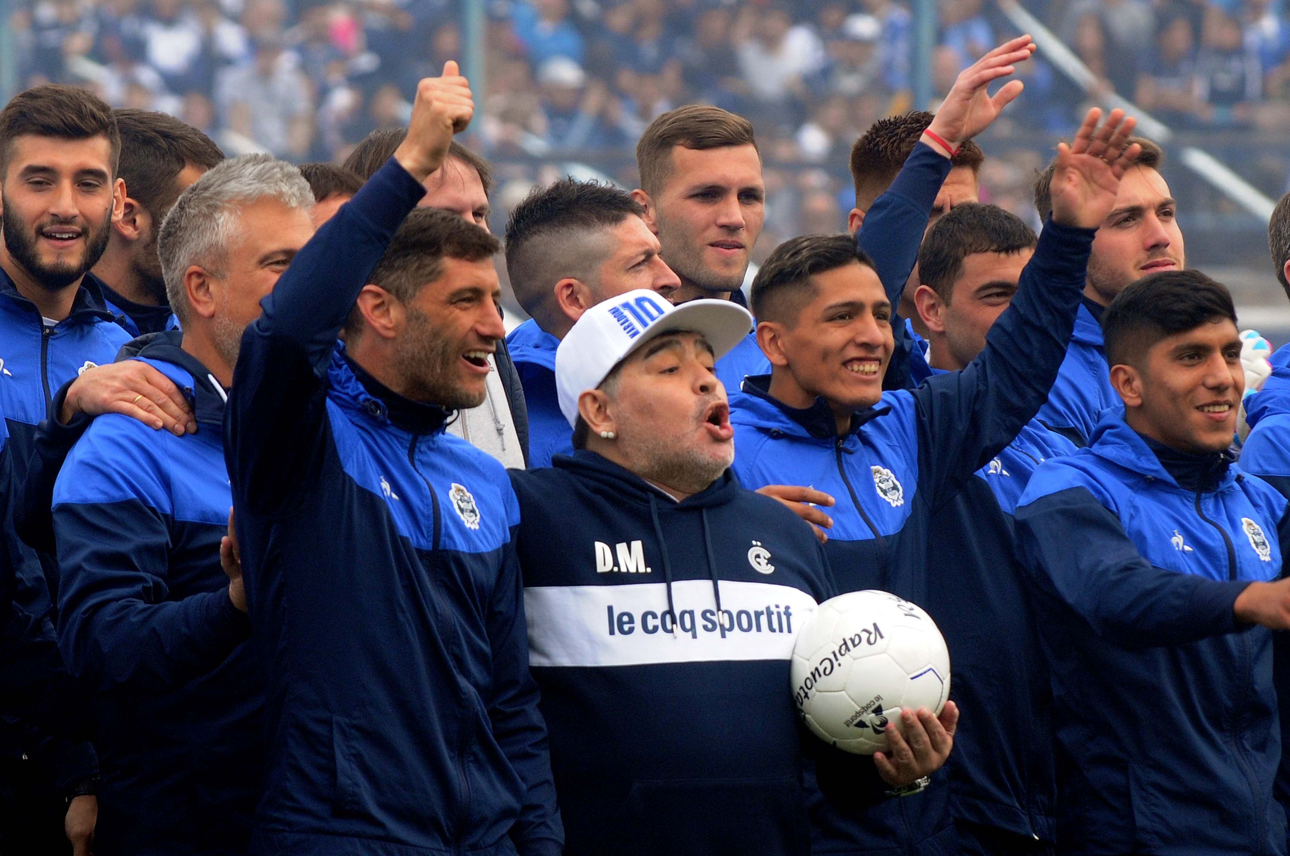 Rodeado por otros jugadores, como el paraguayo Víctor Ayala, Maradona primero encaró al Bochi (38 años), gran referente del plantel que necesita de su impronta para salir del sótano de la tabla de los promedios. Y la primera frase que le dedicó resultó un anticipo de la profunda emoción que viviría el pueblo tripero en la presentación.