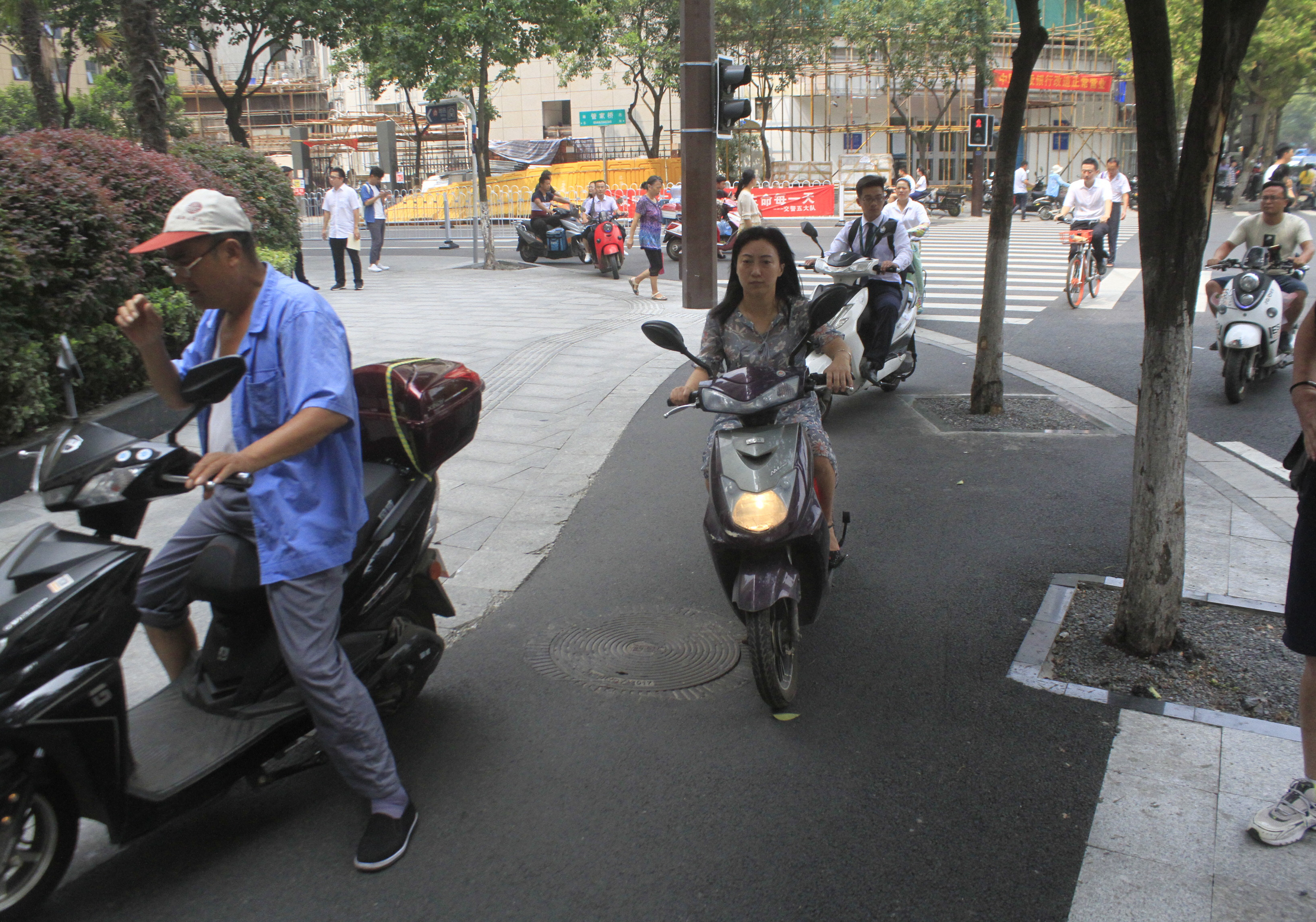 Lo particular, y si se quiere sorprendente para los sanjuaninos, es que aquí nadie usa casco. Entonces, la pregunta es: ¿cuál postura u obligatoriedad es mejor? Y, cuando el índice de accidentes es bajo, que no usen casco tiene su explicación. Acá, en China, las motos no van por el mismo lugar que los autos. Tienen su senda propia que comparten con las bicicletas. Además, no levantan altas velocidades y, encima, son ordenados y obedientes de cada señal.