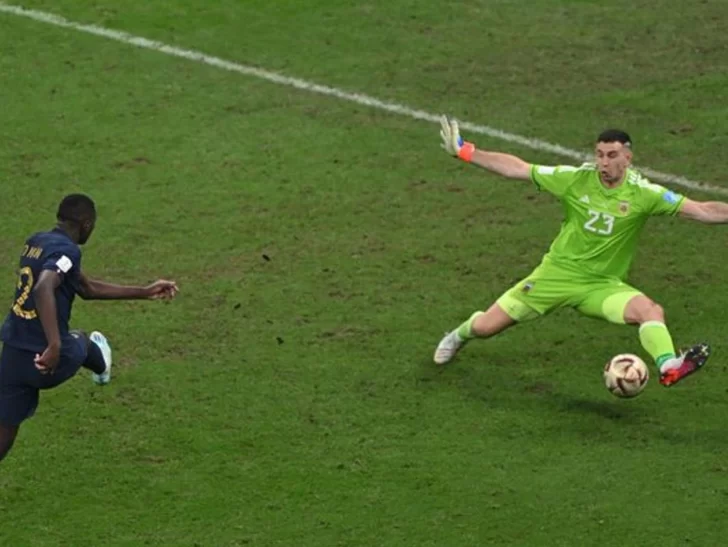 La acción tuvo lugar en el minuto 122 del encuentro, casi sobre el cierre del tiempo suplementario, cuando una pelota aérea de Dayot Upamecano dejó a Kolo Muani cara a cara con el guardameta argentino. El delantero galo optó por rematar fuerte al primer palo, Dibu se lució con su tapada y con el muslo izquierdo evitó lo que hubiese sido el cuarto gol de Francia y la sentencia del duelo.