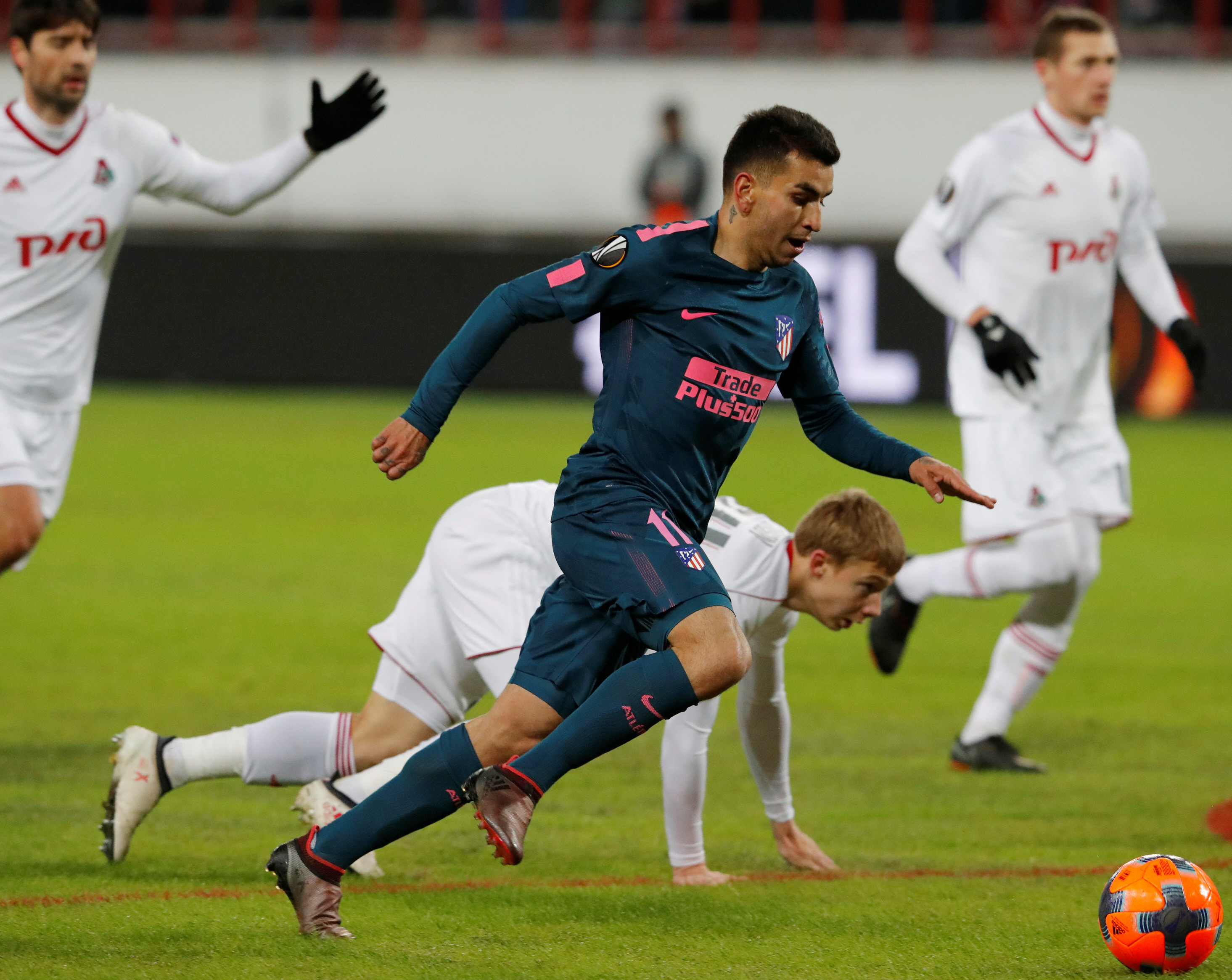 Figura I. Es Angel Correa en el Atlético Madrid que ayer goleó 5-1, en Rusia, al local Lokomotiv de Moscú, y se clasificó a los cuartos de final.