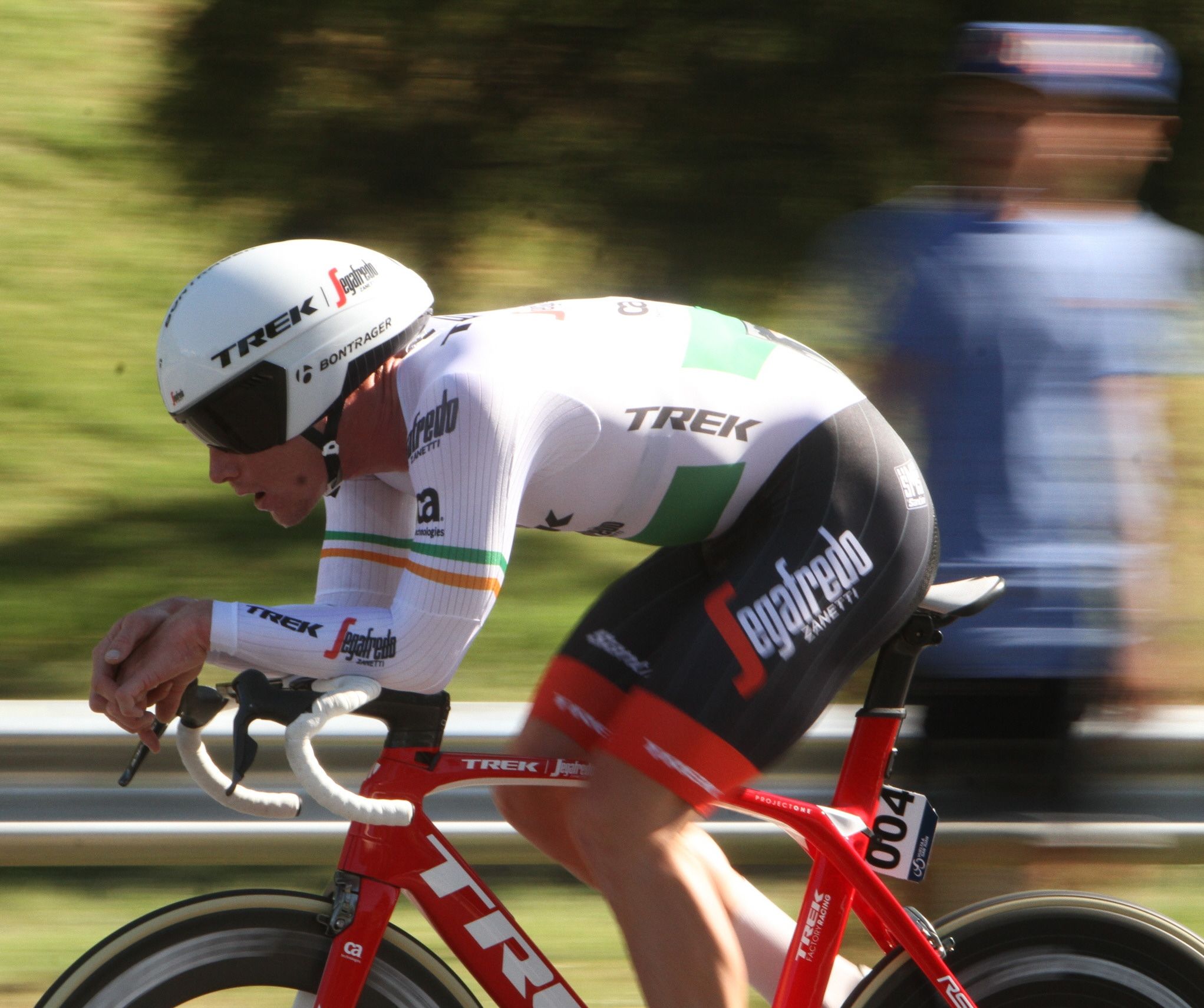 A FONDO, con un paso firme y contundente el rodador del Trek Segafredo marcó la cancha en la Avenida y obligó a sus rivales a pelear por el segundo puesto de la etapa. No lo ayudó haber estado a casi un minuto en la general, que pasó a liderar quien lo escoltó en la contrarreloj, el italiano Filippo Ganna del UAE Emirates.