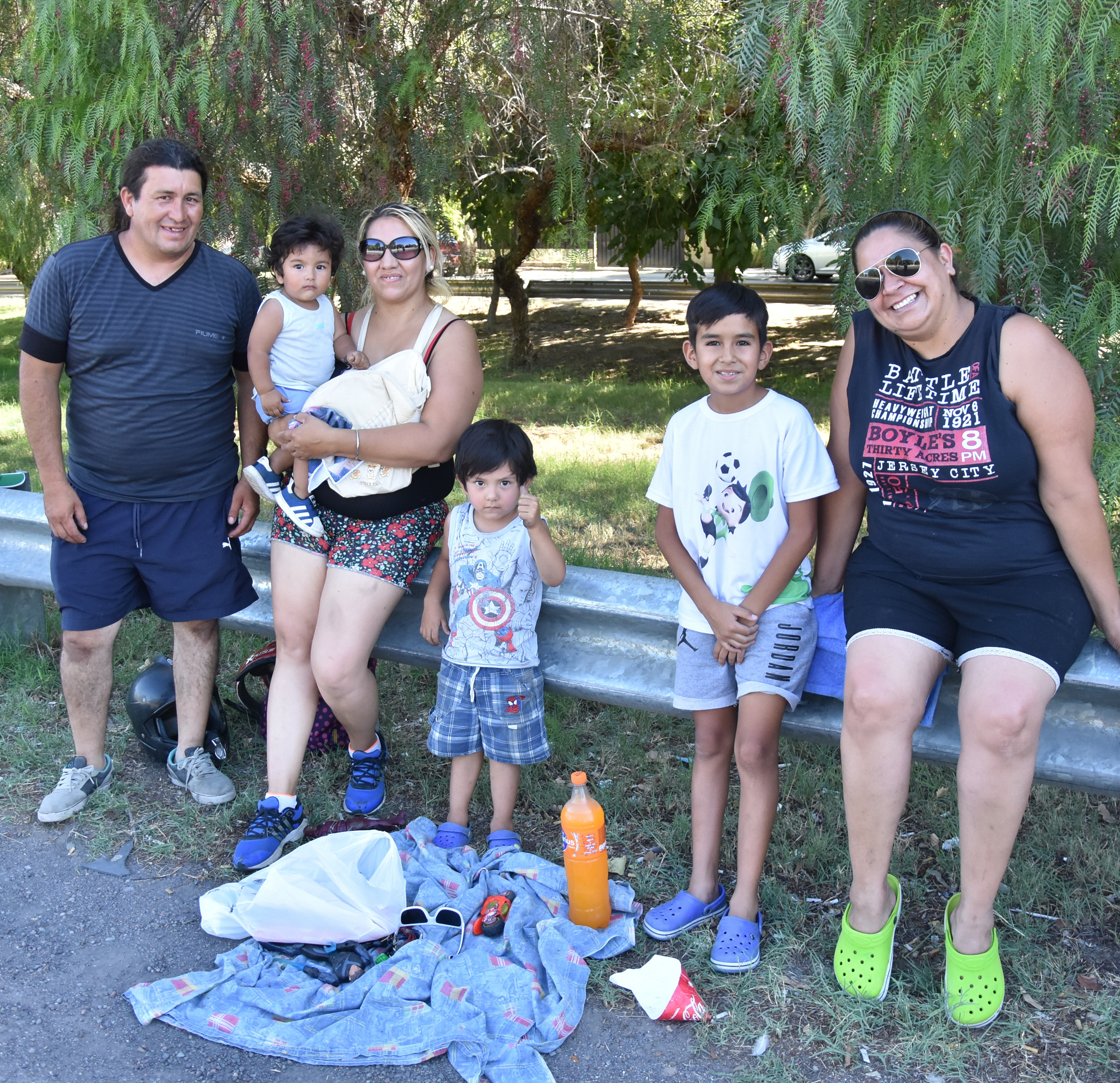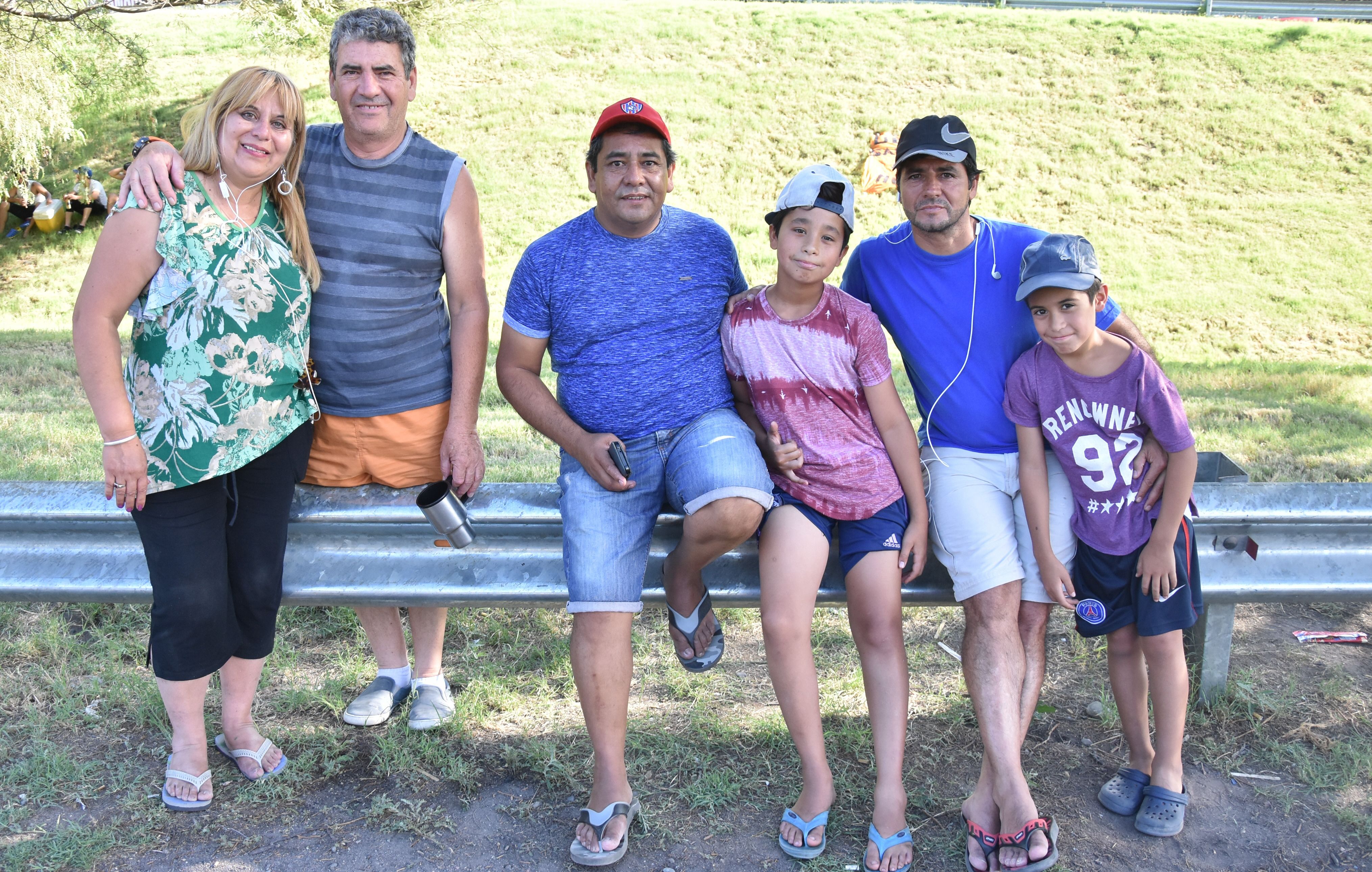 Nicolás Páez junto a su mujer Paola Cachi y sus hijos Samuel y Dylan, junto a Silvana Aguirre y su ahijado Ariel Aguirre, fanáticos del ciclismo. “Somos hinchas del “Pato” Montiveros, antes alentábamos al “Turco” Julio que ya no corre más y del “Chino” Saldaño que ya no está”, comentaron quienes siguen al ciclismo desde siempre.