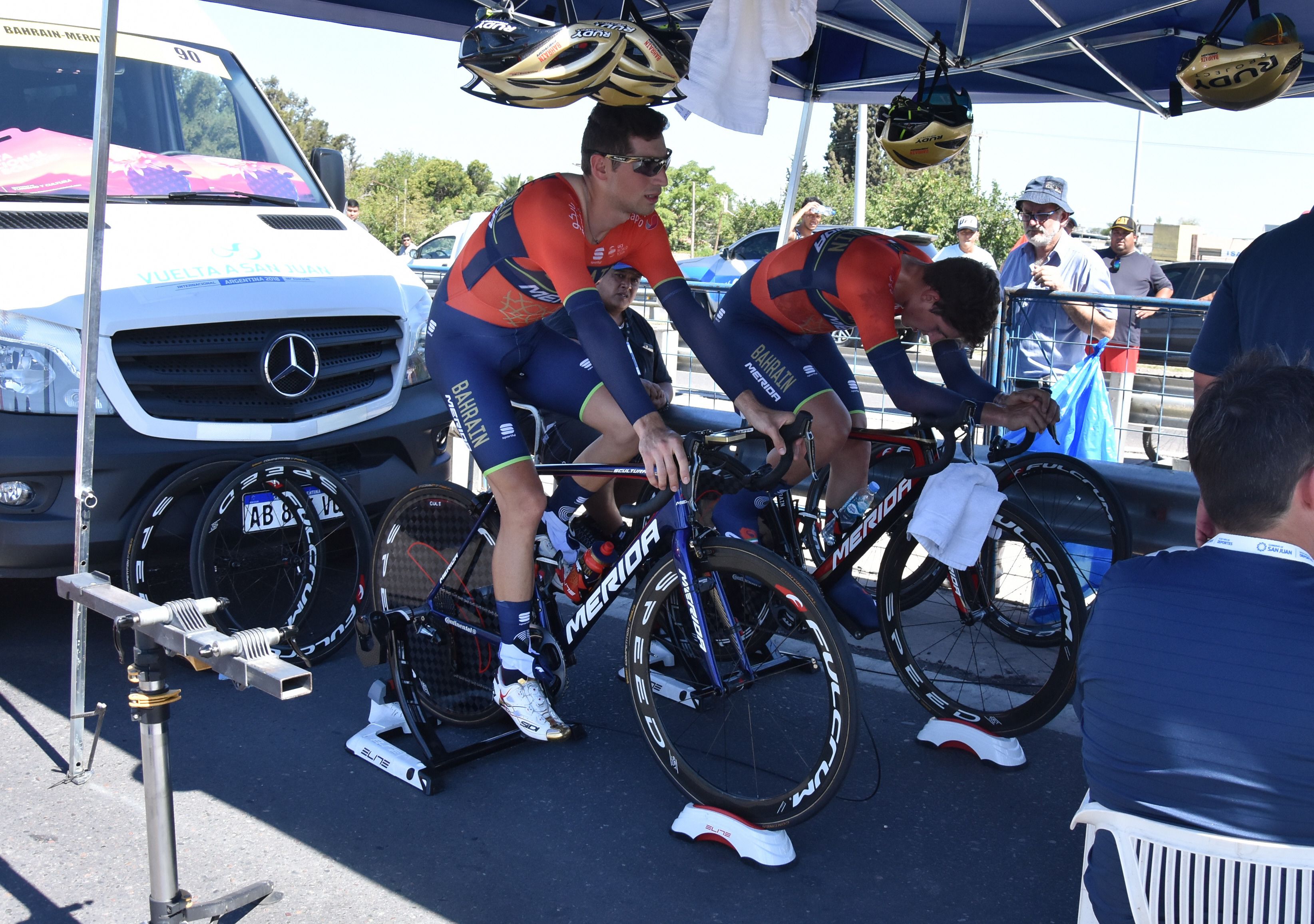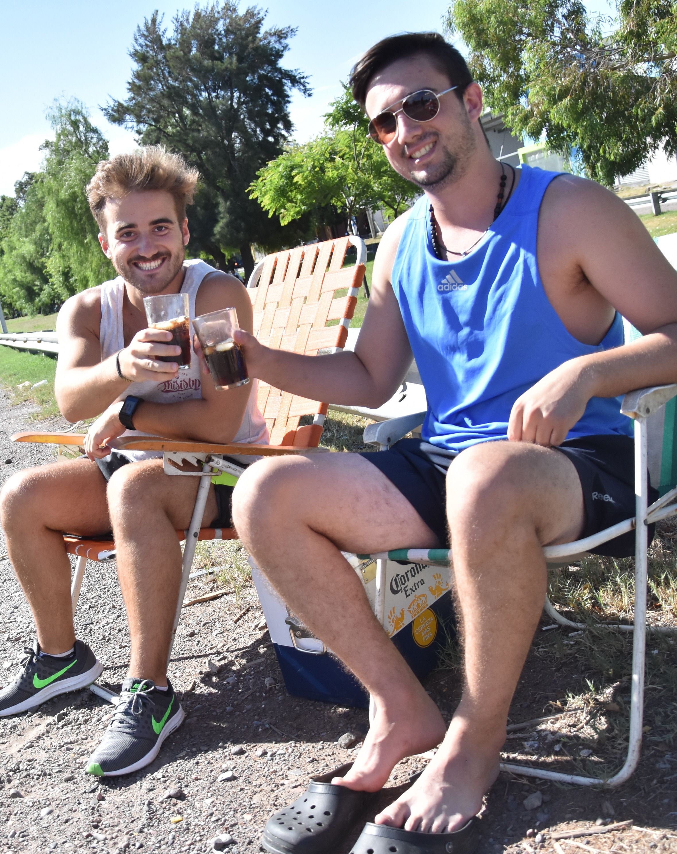 Francisco Correa y Raúl Desimone son amigos oriundos de Capital y Rivadavia y se apostaron a ver el paso de los ciclistas con conservadora en mano y algo para brindar. “Nos encanta el ciclismo, nos hubiese gustado que esté Nibali, es una lástima lo que pasó”, contó Desimone quien dijo que alentaría a Cattapan, su ex vecino.