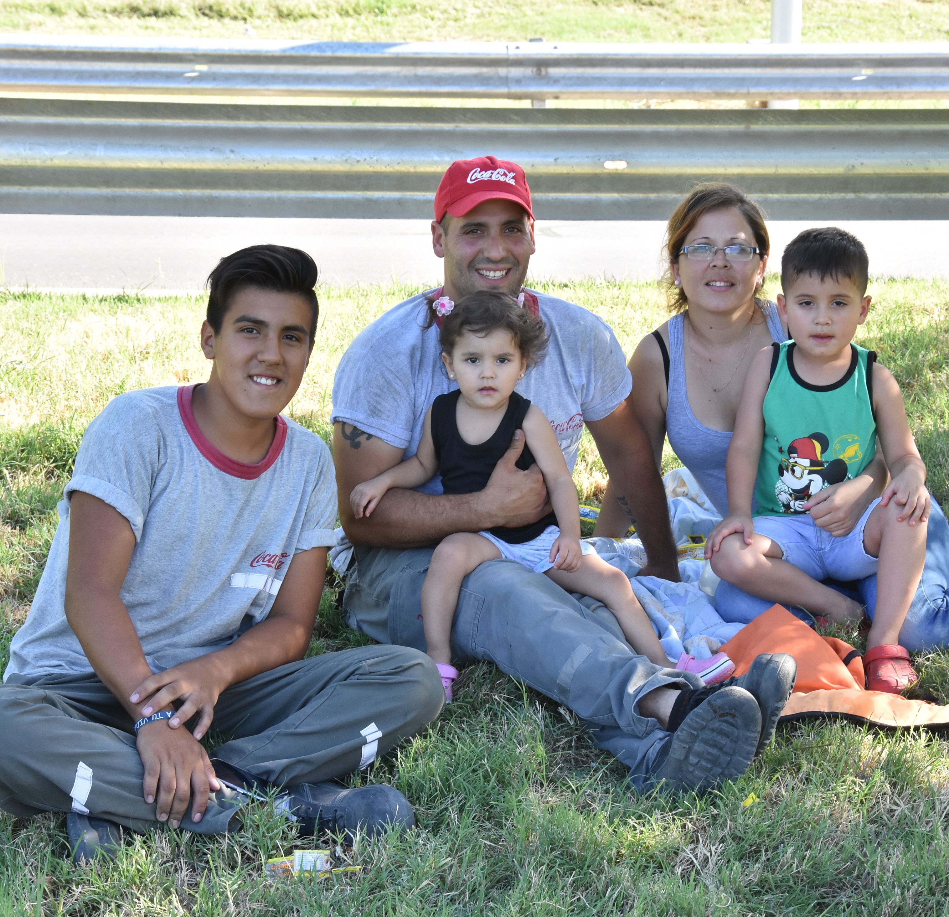 Leandro Giraud, su esposa Stella Muñoz, sus hijos Pía y Mateo, junto a Santiago Ortíz, se apostaron en Circunvalación y Rawson para ver la crono. Los hombres salieron del trabajo donde reparten bebidas y se fueron directo a ver la carrera. Son de Capital y fanáticos del ciclismo, pero mucho más de la Vuelta.