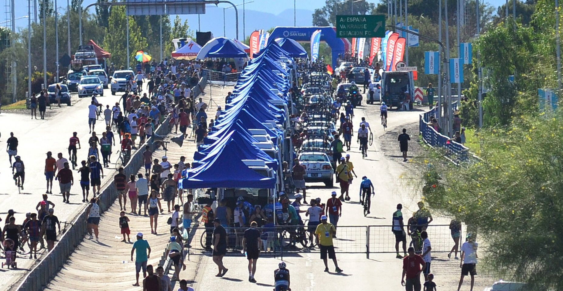 Una ciudad de gazebos y movilidades tipo tráiler copó la Avenida de Circunvalación. La organización ocupó el espacio entre la largada bajo el puente de Avenida España y la llegada bajo el puente de calle Mendoza para colocar los parasoles destinados a cada equipo y otorgar un lugar para el calentamiento de los corredores.
