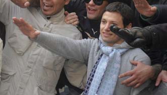 El delantero se presentó ataviado con la bufanda blanquiazul de su equipo, lanzó gritos de apoyo y animó al conjunto capitalino, que perdió por dos goles a cero frente al Bari.