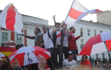 La noche del otoño español los agarró allí, en el lugar más emblemático de Madrid, a los cientos de hinchas de River. El banderazo estuvo custodiado por un cordón policial importante, aunque todo transcurrió con tranquilidad.