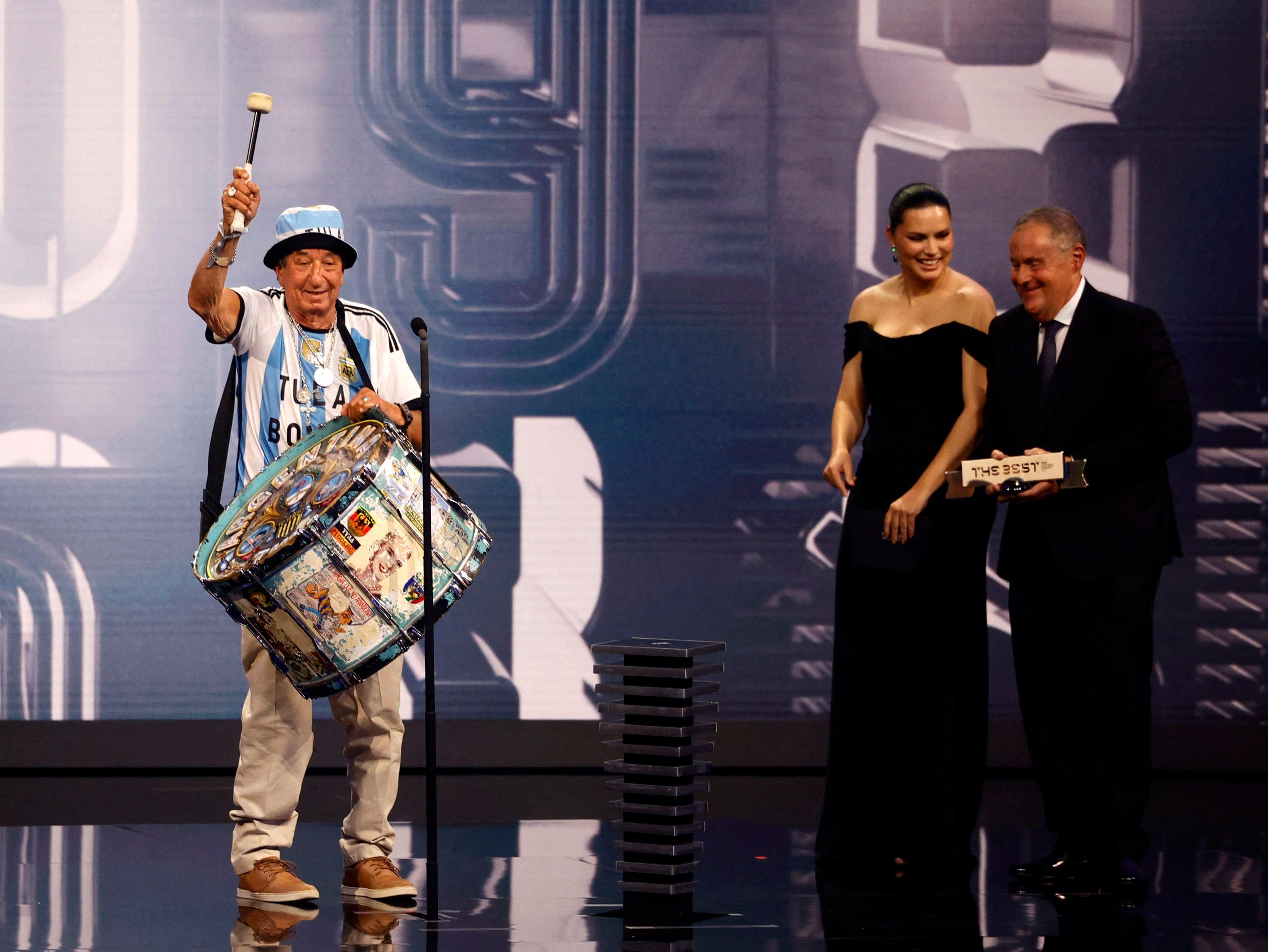 Luego de la consagración en Qatar, Carlos tuvo su pico de protagonismo durante la ceremonia de The Best que se entregaron en 2023. Vale recordar que desde 2016 la FIFA premia la distinción a la “mejor afición”, un galardón que puede ser individual o a una parcialidad general, cómo sucedió en este caso con la hinchada celeste y blanca que inundó las calles de Doha durante la Copa del Mundo. Y qué mejor representación del hincha argentino que el Tula junto a su bombo.
