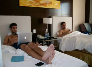 Es en la habitación 1001 del hotel Mercure donde se arman los partidos de fútbol de la Play Station. González y Filardi, jugando juntos, tienen fama de invencibles, aunque hay varios que dominan el jueguito y les dan lucha.