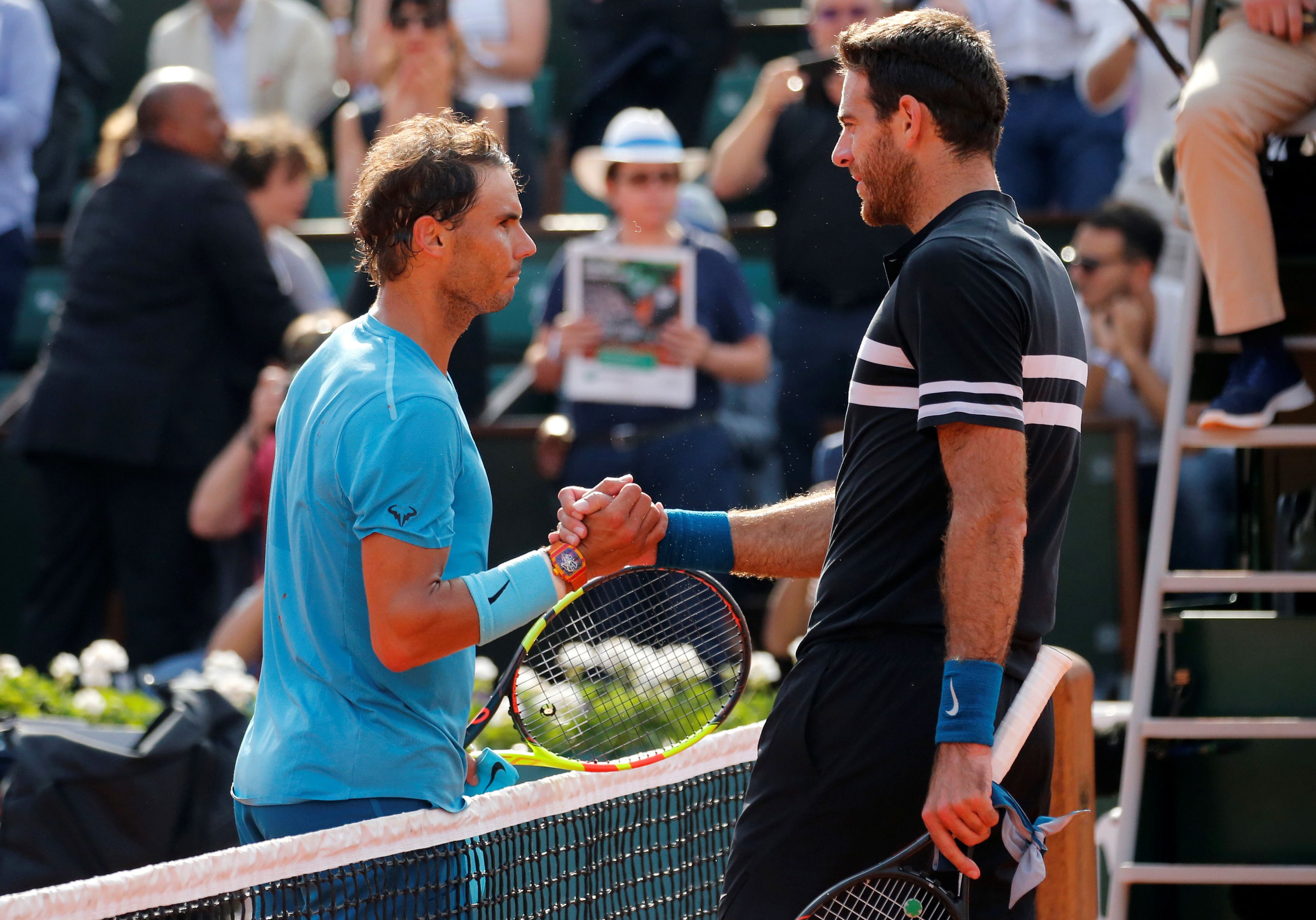 Del Potro, ubicado en el sexto lugar del ranking mundial, estuvo lejos del nivel que mostró ayer en los cuartos de final contra el croata Marin Cilic (4) y no le hizo partido al campeón defensor, que alzó 10 veces el trofeo en París e irá por el undécimo mañana ante el austríaco Dominic Thiem (8), quien en la otra semifinal venció al italiano, sorpresa del torneo, Marco Cecchinato (72) por 7-5, 7-6 (12-10) y 6-1.