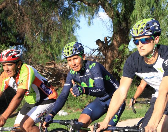 La estrella que hace delirar a todos los fanáticos del ciclismo en tierras puntanas tuvo un nuevo episodio para destacar en la jornada de ayer. Cuando finaliza cada etapa, los equipos normalmente se devuelven en traffic hasta sus respectivos hoteles. Pero ayer, debido a que la etapa contrarreloj se realizaba en la Avenida Eva Perón, en la misma capital puntana, muchos optaron por regresar pedaleando. Y uno de ellos fue Nairo Quintana. El crack. El colombiano de 24 años se desprendió por un rato de sus custodios y pedaleó junto a un grupo de cuatro hombres que, también en bicicletas, regresaban tras ver la competencia. Tan grato fue el trayecto que sus ‘nuevos‘ compañeros de pelotón conversaron con el ídolo y lo acompañaron hasta el hotel Vista, en Avenida Illia. Todo un gesto el de Nairo, un pibe al que usualmente se lo nota de apariencia seria pero al que parece sobrarle humildad.