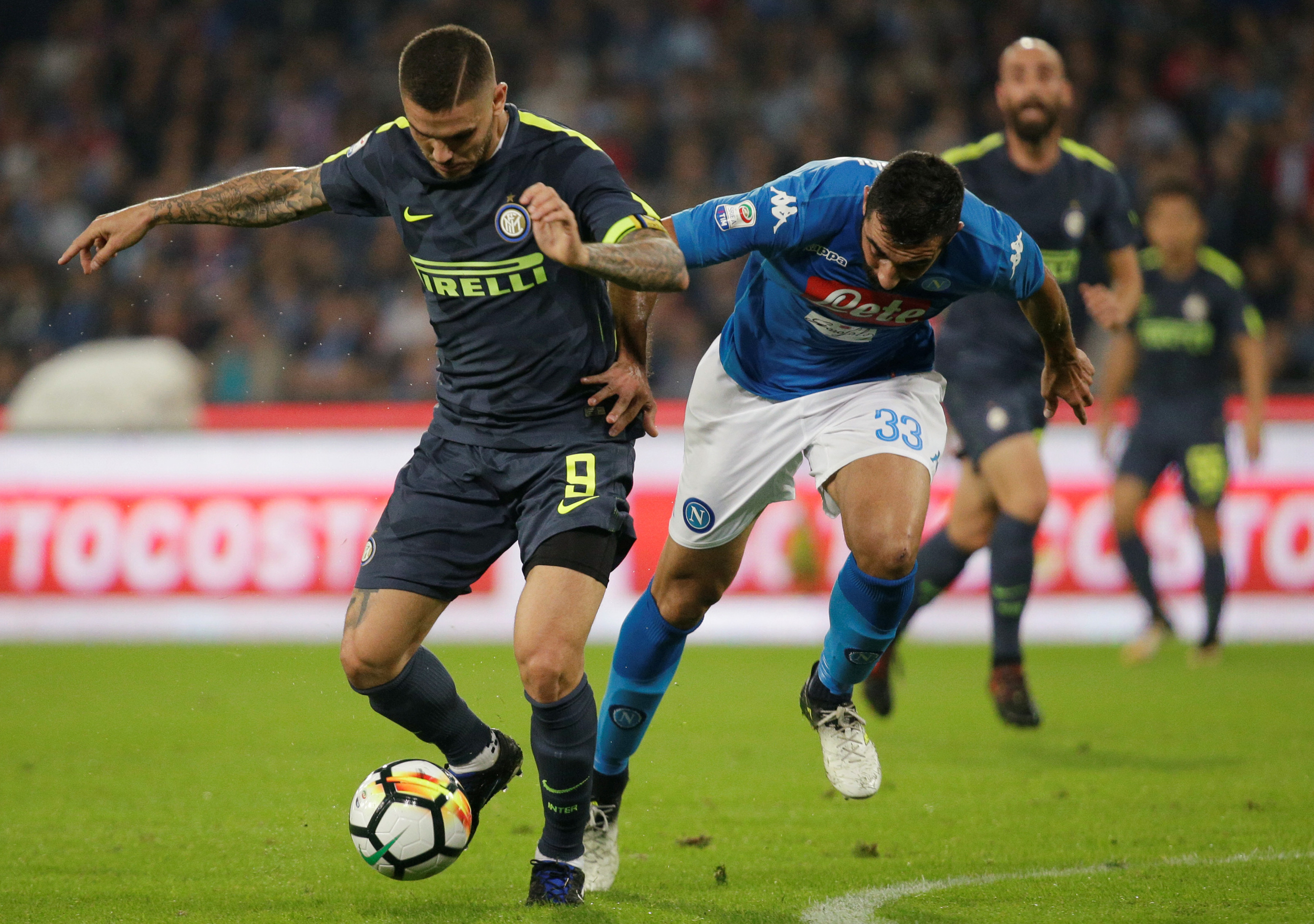 Nápoli, líder invicto de la liga italiana de fútbol de primera división, igualó sin goles, de local, con su escolta Inter, que tuvo al delantero argentino Mauro Icardi como titular, en el partido excluyente de los dos adelantados jugados ayer por la novena fecha.