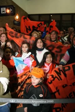 Pero fueron ellos, los chicos y sus familiares los que le pusieron el color a la bienvenida con innumerables banderas de color naranja, con los nombres de los pies y la satisfacción por el objetivo logrado.