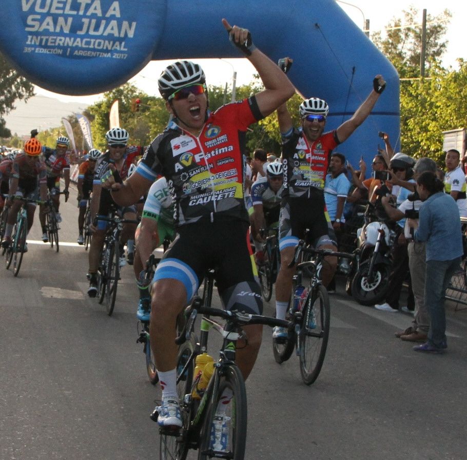 La definición. Naranjo, ya seguro de su victoria, comienza el festejo a diez metros de la raya. Detrás suyo, en el tercer puesto, también festeja su compañero Mauro Richeze.