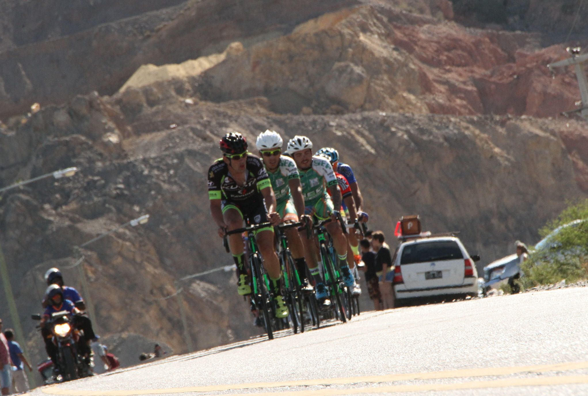 Y, aún siendo los más activos en cuanto a ataque y contra ataque, el SEP no tenía en el pelotón de punta a sus hombres rápidos. Mauricio Quiroga y su lanzador, Darío Álvarez venían atrás tratando de alcanzar junto a varios adversarios que lamían sus heridas de guerra, pero no sucumbían en la expectativa de alcanzar. Como los de arriba se serenaron, los que perseguían consiguieron contactarlos antes de ascender al caracol de la ruta que lleva a la cima del paredón del Dique de Punta Negra, donde se produjo el último intento del SEP, junto a los pocitanos, de quebrar la carrera.