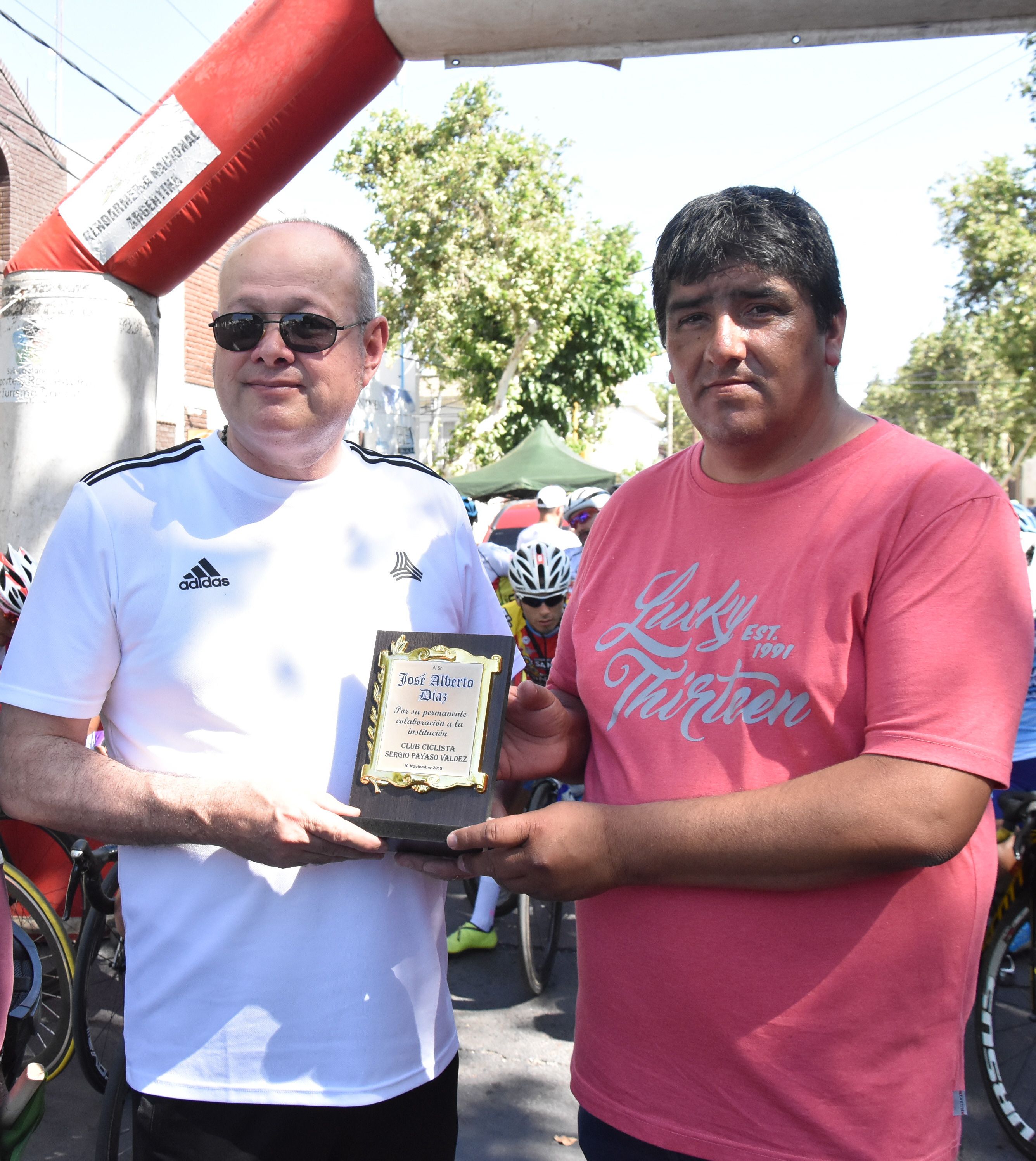 Los dirigentes del Club Sergio "Payaso" Valdez, antes del lanzamiento de la carrera que como siempre se hizo frente a la sede del Sindicato de Empleados Públicos, realizó un homenaje al secretario general de la entidad, José Alberto Díaz (foto) que apoyo siempre a esta competencia. La presencia del SEP en el deporte está activa no solo en su equipo de ciclismo continental, también es firme en el auspicio a deportistas y equipos de otras disciplinas.