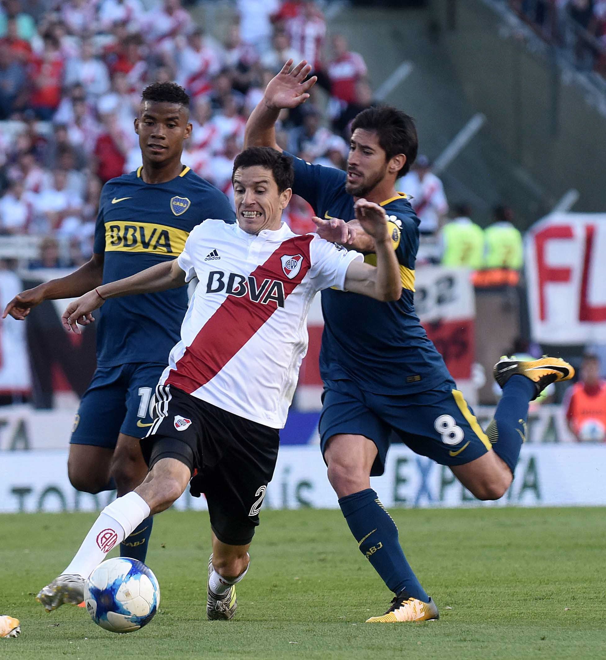 El colombiano Edwin Cardona y el uruguayo Nahitan Nández marcaron los goles del equipo dirigido por Guillermo Barros Schelotto a los 41 minutos del primer tiempo y a los 23 de la segunda parte, respectivamente, para sellar la octava victoria seguida del "Xeneize" en el campeonato. El capitán de River, Leonardo Ponzio, había igualado transitoriamente a los 23 minutos del segundo período.