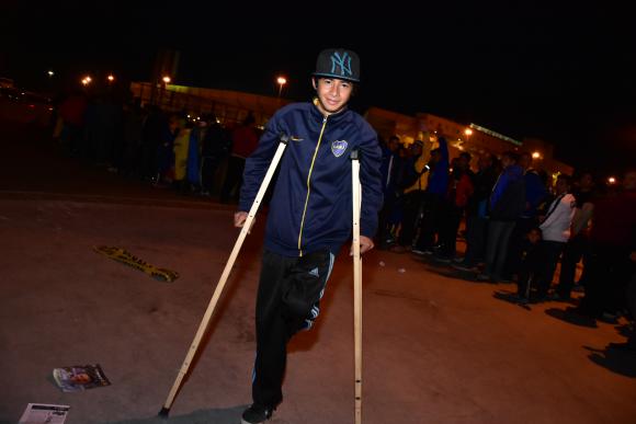 San Juan, 19 de agosto.- Alan Rivero tiene 16 años, sufrió una fisura en un tobillo jugando a la pelota y camina con muletas. Sin embargo, eso no fue impedimento para cumplir su sueño de ver a Boca en San Juan.