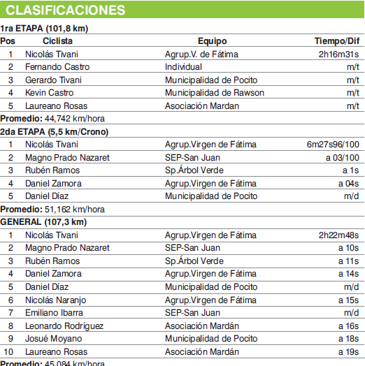 La fiesta del pedal sanjuanino se trasladó ayer a Valle Fértil y los habitantes de los distintos distritos del pintoresco departamento vieron en acción a los titanes del pedal. El primer día, que tuvo doble acción, tuvo un protagonista excluyente: Nicolás Tivani. El corredor pocitano que por cuestiones de la vida no le pudo dar continuidad a su campaña en Europa, en las pocas carreras que corrió mostró su calidad. Tanto así es que por los puntos que sumará durante esta prueba -gané o no la general- quedará a tiro de escopeta de pelear el campeonato sanjuanino de ruta.
