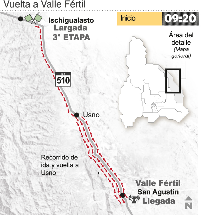 Ayer, con 80 hombres en la línea de partida en Chucuma, comenzó una carrera, que aun teniendo un sólido líder, por el reglamento especial que tiene mantiene viva las expectativas de quienes se encuentran a menos de 20 segundos del puntero. Si la Vuelta al Valle otorgara la bonificación normal de 10, 6 y 4, como todas las prueba, podría hablarse ya de una victoria de Tivani, porque aun ganando la etapa el brasileño Magno Prado Nazaret (SEP-San Juan) no podría superarlo: está a 10s03/100. Pero como da bonificación doble (20s al primero) todo puede pasar.