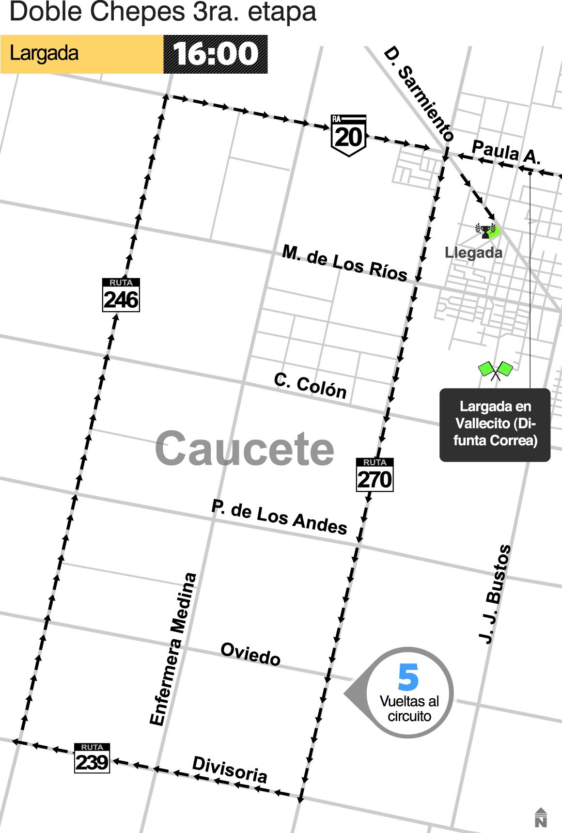 La etapa final comenzará en el paraje de la Difunta Correa a las 16 y culminará en Caucete tras dar cinco giros al circuito (ver infografía). Tivani tiene como principal perseguidor a Kevin Castro quien hoy está a 31 segundos. El pibe rawsino viene dando pelea en la temporada y hoy es un hecho que buscará la hazaña. En tanto que Maxi Navarrete (Mun. de Pocito) está a 33 segundos y el resto a 37 segundos. Laureano Rosas (P.de Cuyo) aparece entre ese grupo y el de Las Flores también gastará todas las fichas para dar el batacazo.