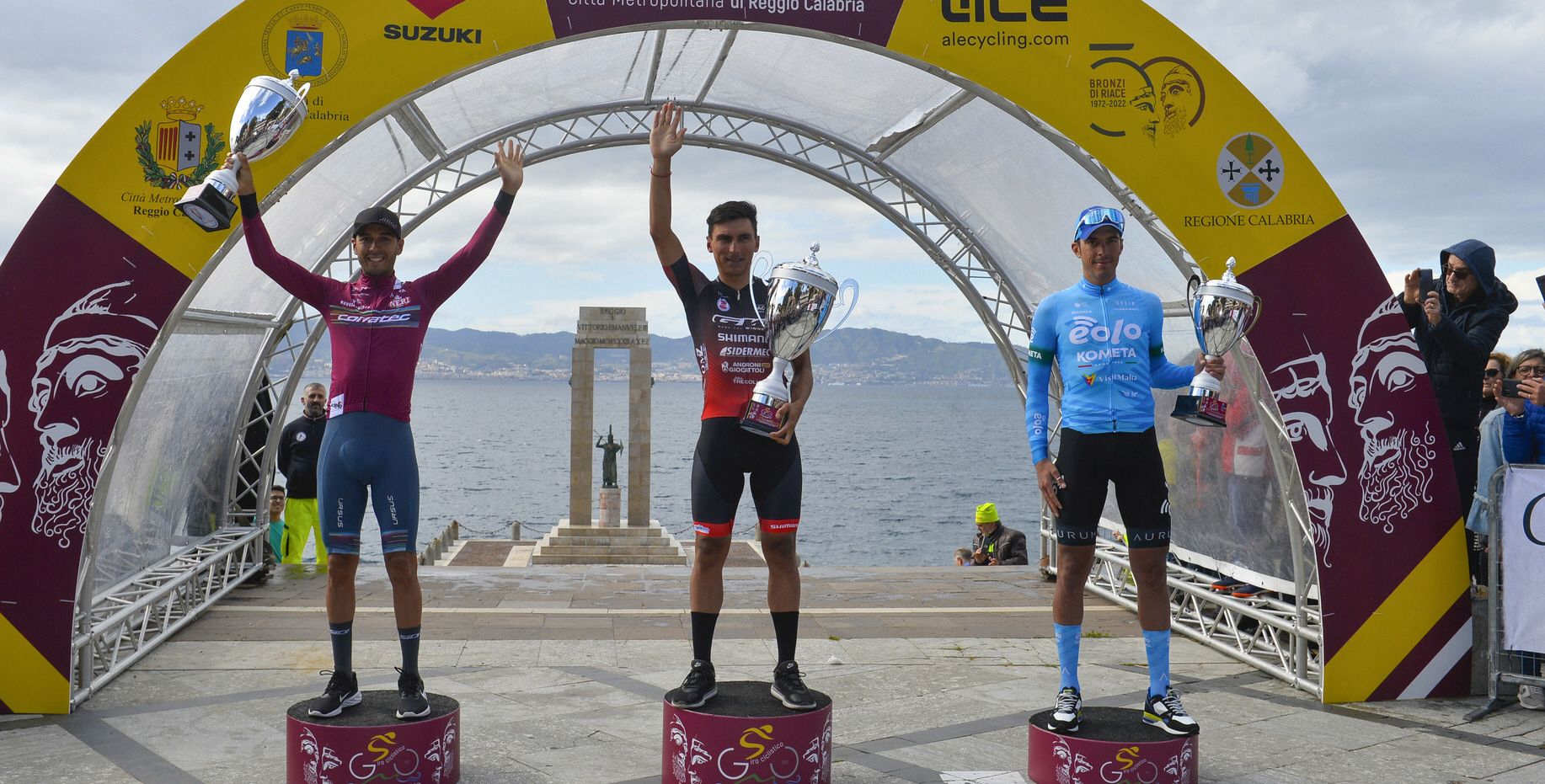 Nico, junto a Restrepo y Maestri en el podio. El colombiano corrió dos Vueltas a España (2017 y 18) y un Giro de Italia (2020). El italiano cuatro Giros (2016, 17, 18 y 20). Tivani espera correr su primera carrera "grande". El resultado de ayer, fue un paso gigante a esa meta.