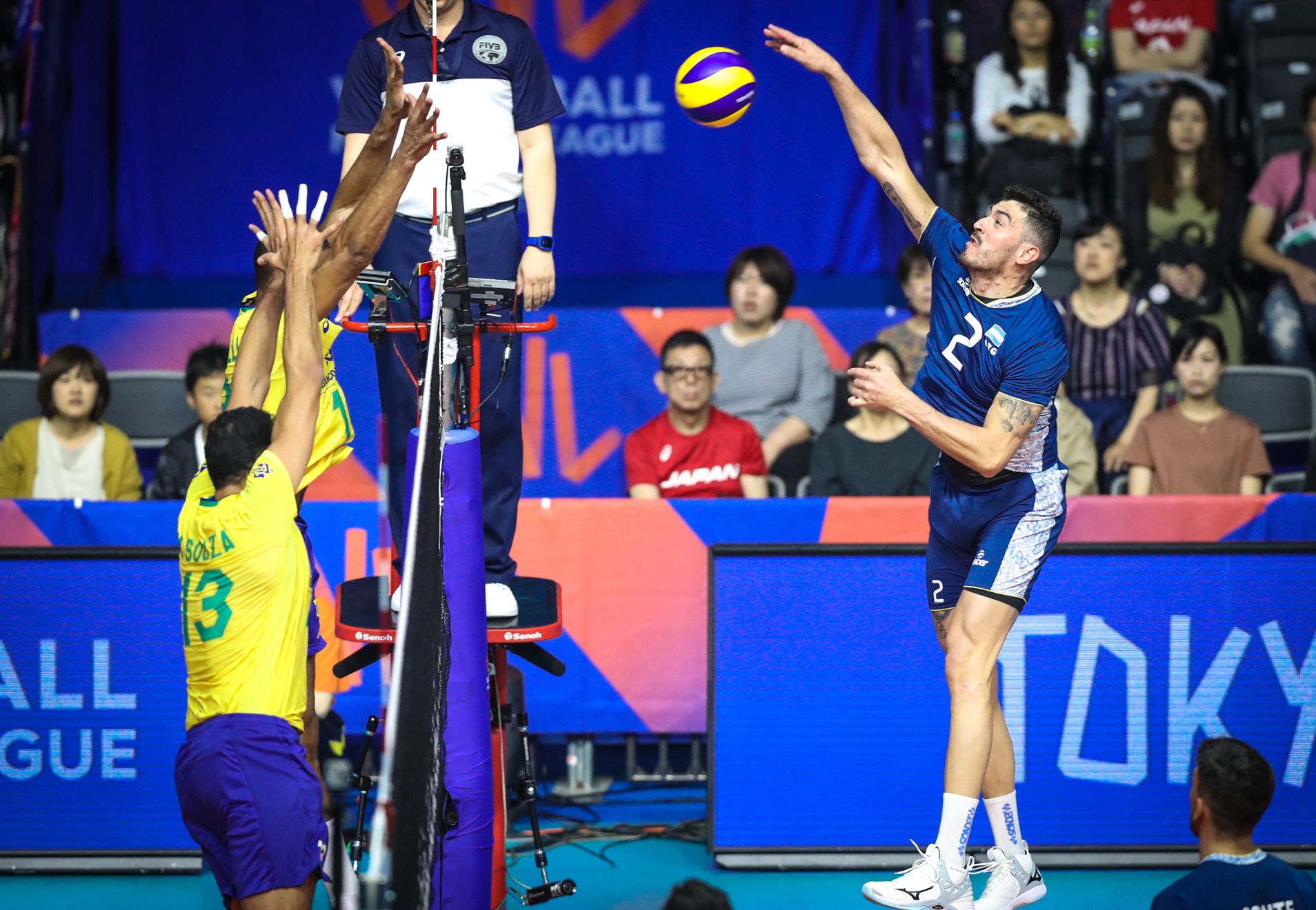 En el cierre del segundo weekend de la Liga de Naciones de Vóleibol, Argentina cayó ante Brasil por 3-2 luego de haber completado una enorme actuación en Japón. Fueron apenas detalles los que definieron el tie break en favor del último campeón olímpico con parciales de 20-25, 25-21, 28-26, 23-25 y 12-15. El sanjuanino Federico Pereyra fue la figura de la noche y máximo anotador con 26 puntos, pero eso no alcanzó ante el campeón olímpico. Ahora, Argentina emprenderá viaje rumbo a Francia para el tercer weekend de la VNL.