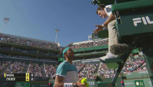 Cuando el game terminó, Nadal ensayó una protesta en voz alta a Mourier por la actitud de Zverev. Presumiblemente el español dijo alguna palabra de más cuando se daba vuelta para reiniciar el juego, y el umpire anunció la amonestación o warning por ‘violación de código, obscenidad audible’.