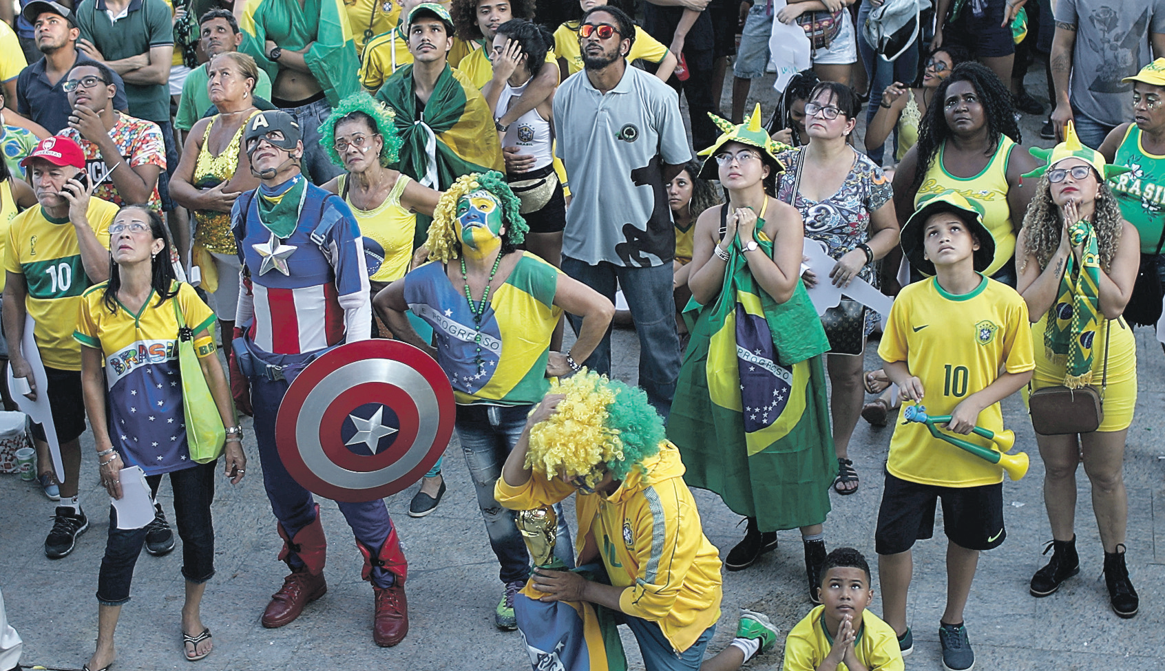 Los hinchas brasileños sufrieron la eliminación del Mundial ante Bélgica. Una multitud reunida en Río de Janeiro vio cómo Neymar y compañía decían adiós, y sin que la ayuda del superhéroe pueda evitarlo.