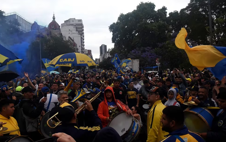 En medio de canciones el encuentro de los hinchas fue creciendo con el correr de los minutos y cerca de las 17 horas se complicó el tránsito por las calles del barrio de La Boca ante la presencia de la gente que reunió para movilizarse e ir hasta La Bombonera.