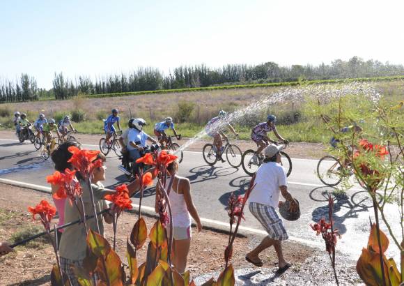 No faltó la clásica lluvia de agua desde una manguera y algunos baldes que ducharon circunstancialmente a los pedalistas. Esa es una, sino la manera, en que los aficionados corren “su carrera”.