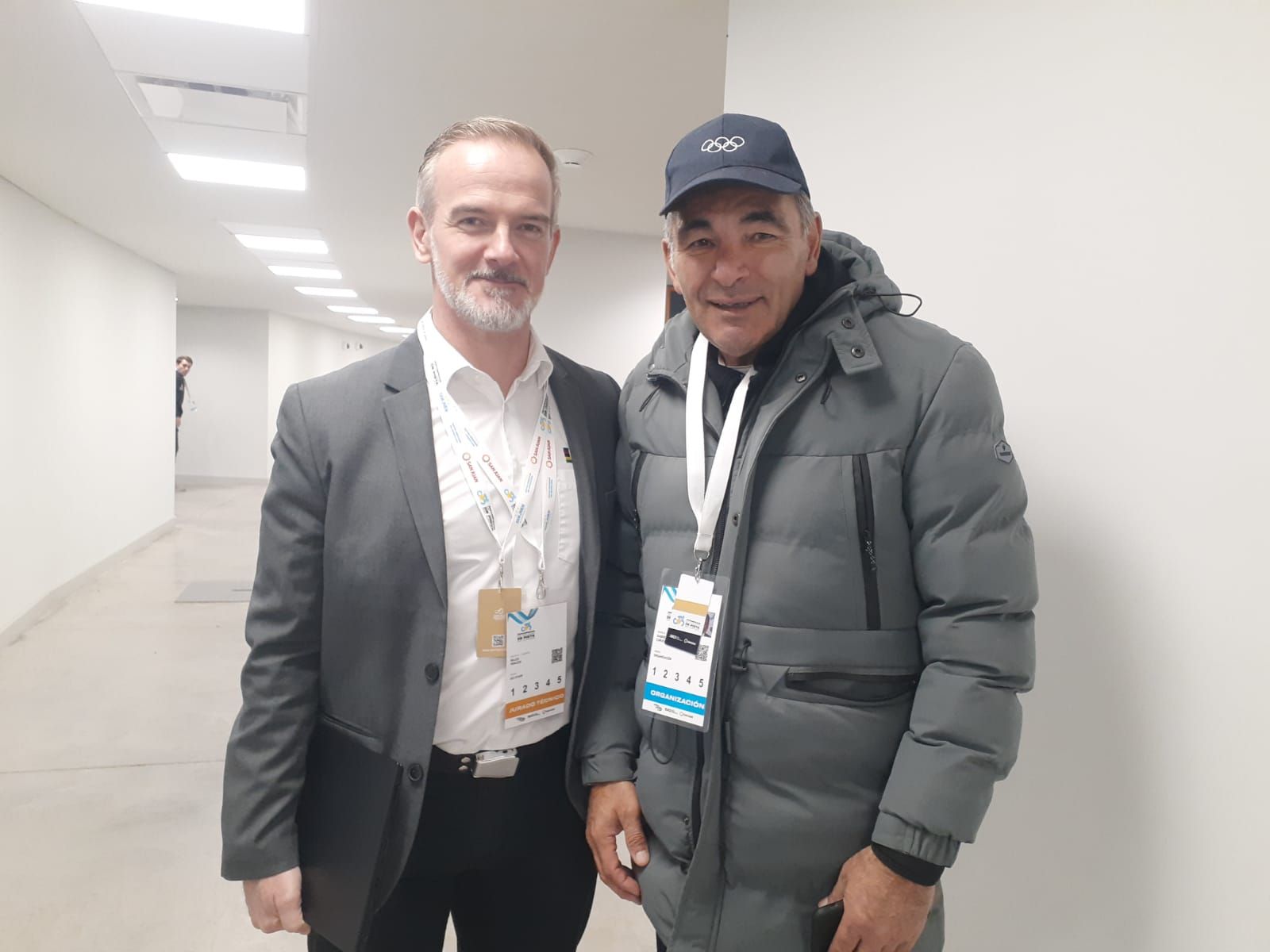 Gilles Peruzzi jefe de pista de UCI y Gabriel Curuchet, presidente de la Unión Ciclista de la República Argentina