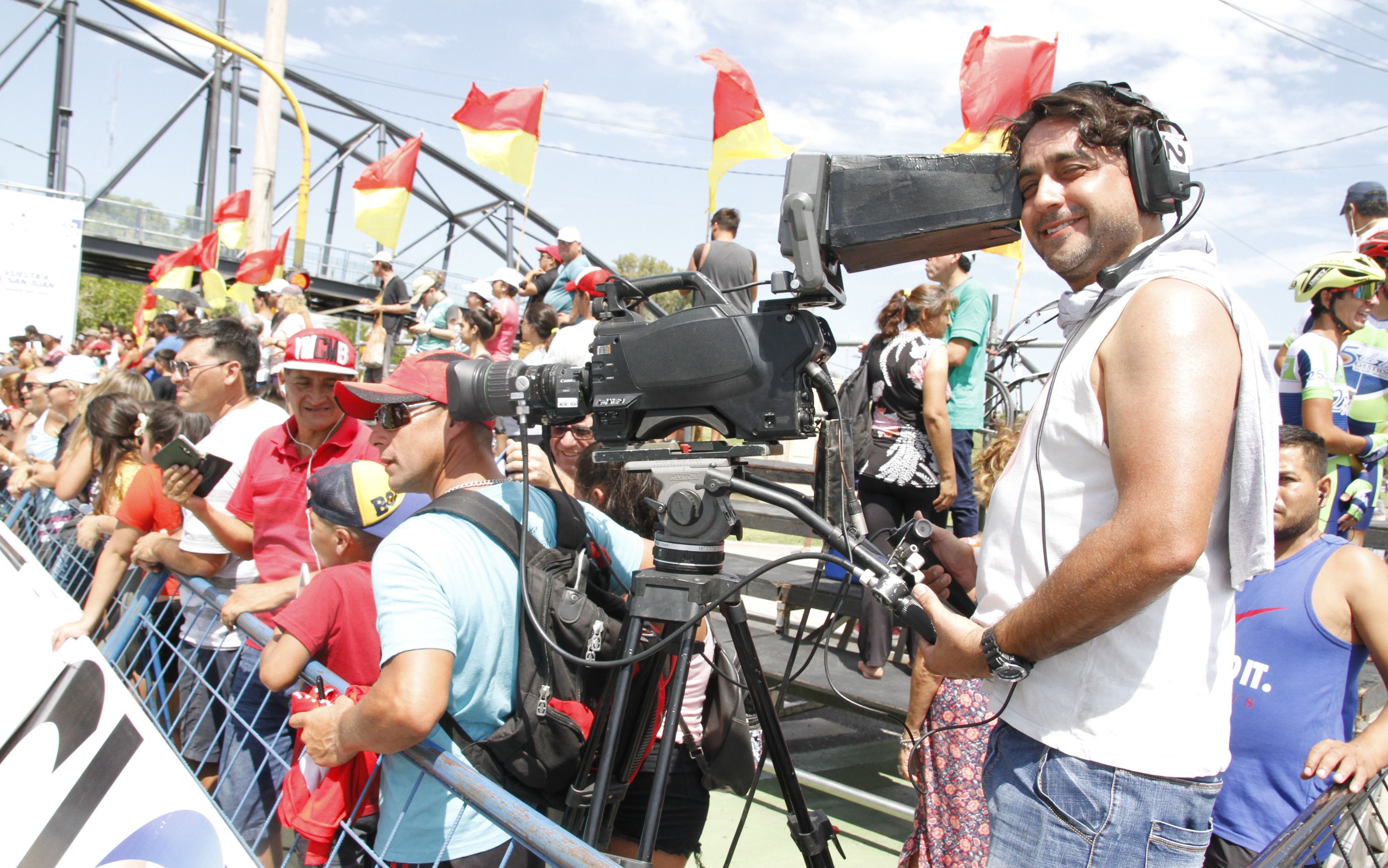 En el helicóptero trabajó una, de la docena, de cámaras afectadas a las tres señales televisivas por las que se trasmitió la carrera. Hubo cuatro en motos, otra en un avión y seis en la posición de llegada.