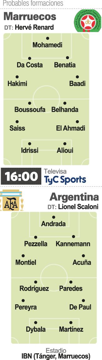 La ‘albiceleste‘ volverá a jugar sin su capitán y máximo referente futbolístico, Lionel Messi, quien por una reagudización de dolor pubiano bilateral que acusó luego del partido fue desafectado y retornó a Barcelona. La ausencia del crack provocó malestar en Marruecos, pero la Federación local se ahorrará alrededor de medio millón de euros del monto acordado para la disputa del partido.