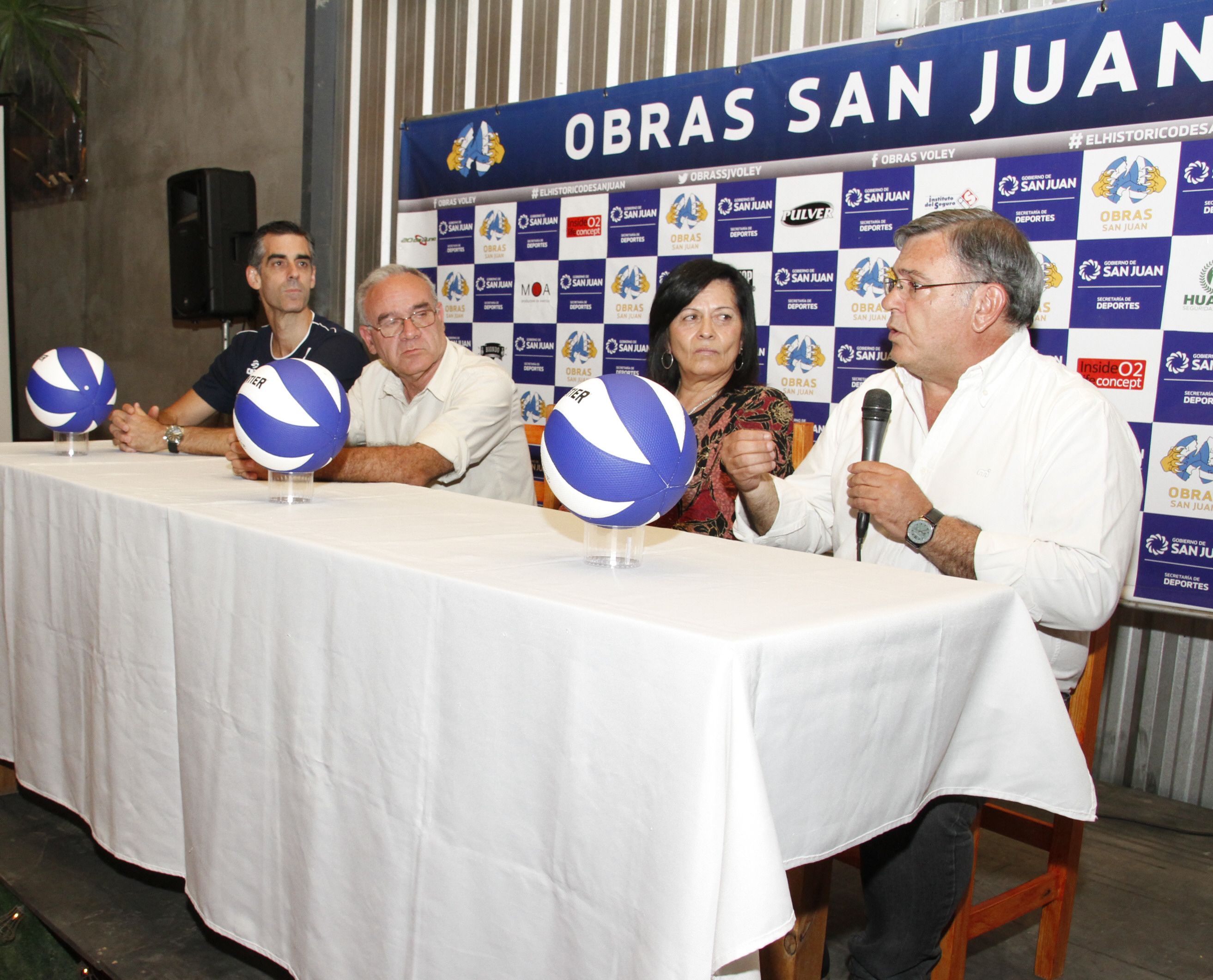El nuevo plantel de Obras San Juan Voley realizó anoche su presentación en sociedad, a la vez que exhibió las camisetas que lucirá esta temporada. Fue en un encuentro con integrantes del club, autoridades y periodistas en un local de Rivadavia, en la previa del debut del conjunto sanjuanino en la Liga de Vóleibol de Argentina, que se producirá el próximo sábado ante Gigantes, en El Palomar.
