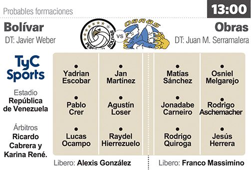 El equipo ya dejó atrás la derrota y trabajó buscando mejorar lo que no funcionó el viernes. Y confiado en sus posibilidades es que Obras buscará hoy la revancha ante Bolívar en el segundo partido de la serie final de la Liga de Vóleibol Argentina, que se jugará en el estadio República de Venezuela desde las 13 (televisará TyC Sports).