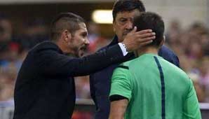 España, 25 de agosto.- "Cuando uno se equivoca, es justo pagarlo", había dicho Diego Simeone sabiendo que la sanción que caería sobre él iba a ser dura. Y el Comité de Competición fue consecuente y no mostró compasión con el DT argentino, le propinó una dura sanción de 8 partidos y casi 5 mil euros de multa luego de su expulsión en el partido de la Supercopa española ante el Real Madrid en el que protestó desmedidamente y hasta golpeó al cuarto árbitro.