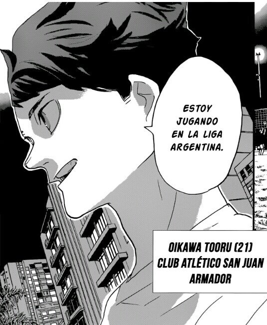 La aparición de Oikawa en San Juan jugando la Liga Argentina sucede en el capítulo 372. Lo revela en un encuentro con Hinata en Río de Janeiro, donde le cuenta que eligió jugar en Argentina porque se inspiró en el veterano armador argentino José Blanco.