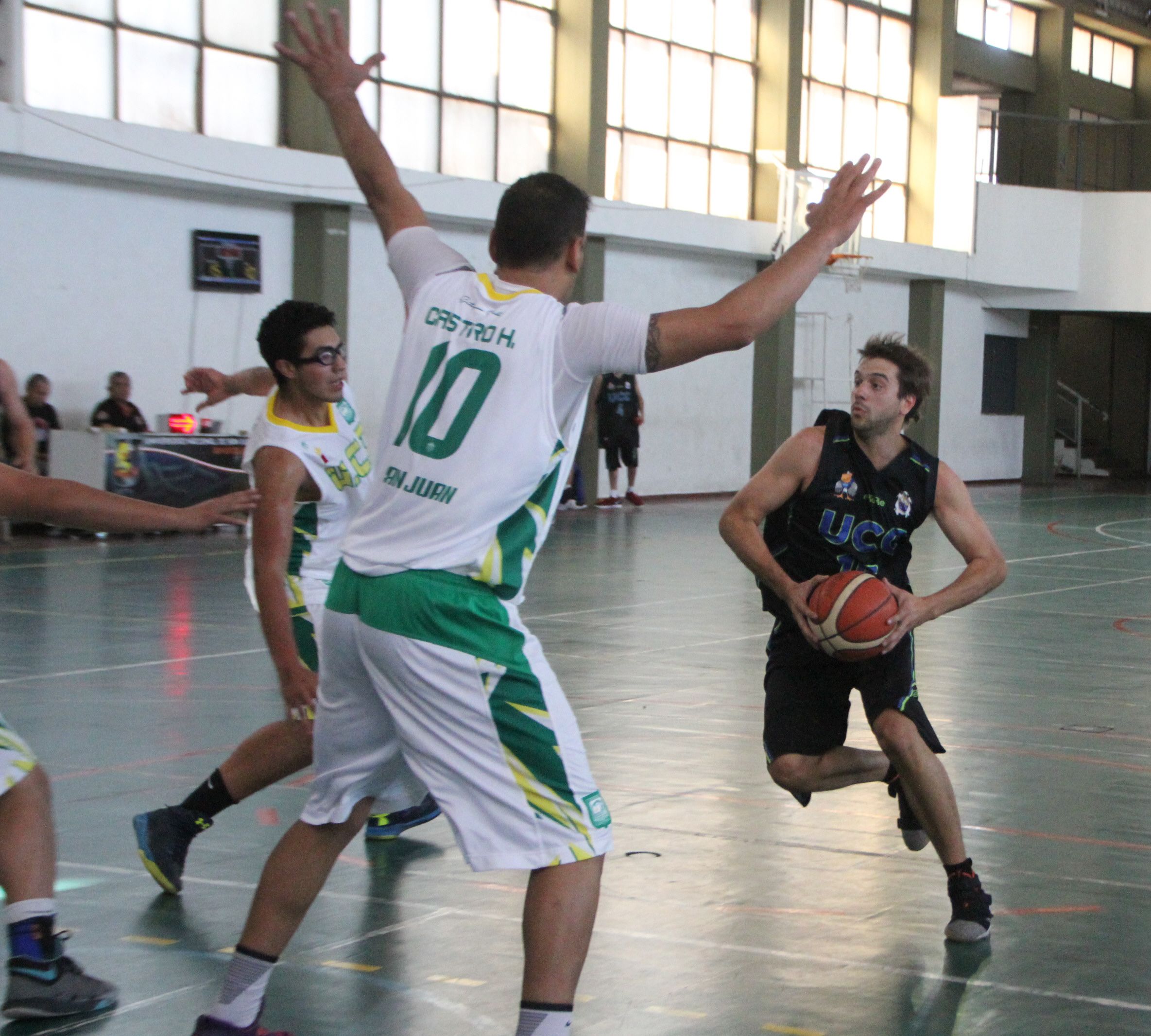 Disputados. Los partidos de básquet se desarrollan en el gimnasio Ambrosini. La UCCuyo y la de Córdoba disputaron un intenso juego ayer.