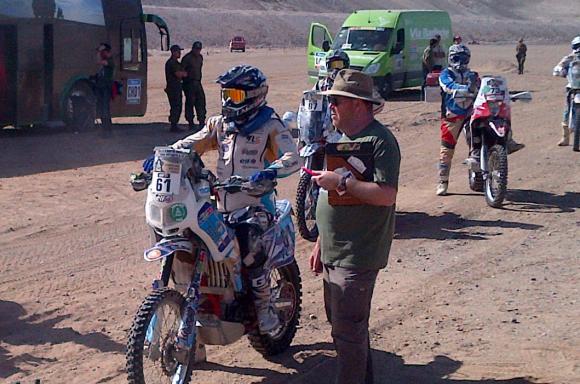 ‘Lo bueno es que la moto está bien y no tengo que hacerle nada. Estoy levantado desde las 3 de la mañana y fue un largo día. Cruzamos la Cordillera y nuevamente tuve que soportar temperaturas bajo cero. Después, en carrera todo salió bien. Paisajes muy pintorescos y corrimos sobre suelos que son muy parecidos al camino de Agua Negra y en el Tontal‘, describió el Puchi.