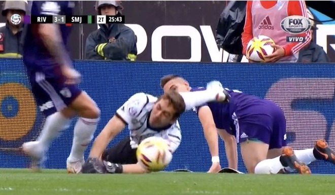 El 4-1 de River tuvo su tono discutible en el Monumental. ¿Qué pasó? El árbitro Germán Delfino decidió cobrar penal al entender que Enzo Pérez fue cruzado por Luis Ardente, arquero de San Martín de San Juan. Pero la repetición de la jugada dejó dudas. ¿Lo tocó o el volante de Millo se tiró a la pileta cuando lo iban a cruzar? Poco le importó a Pity Martínez para aumentar el resultado en favor del Millo.