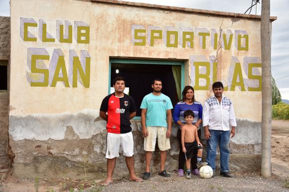 En Bella Vista, Jáchal, viven unas 100 familias que son fieles seguidoras de San Blas, el patrono que no solo le dio nombre a la calle principal, sino que también al club más importante de la localidad y que precisamente se encuentra sobre esa arteria, a pocos metros del templo religioso. Y, en otra clara muestra de la gran devoción de la gente del pueblo, la institución deportiva también heredó los colores del santo: el verde y morado que sustituyeron al rojo y blanco de los comienzos. El Club Sportivo San Blas nació allá por la década del ’60 como una entidad callejera, en el mismo lugar donde se encuentra en la actualidad, pero con la diferencia de que era prácticamente un desierto y hoy luce una cancha de césped que posee riego por aspersión.