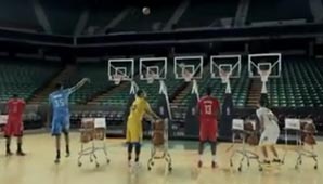 LeBron James (Miami Heat), Derrick Rose (Chicago Bulls), Kevin Durant (Oklahoma City Thunder), Stephen Curry (Golden State Warriors), James Harden (Houston Rockets) y Steve Nash (Los Angeles Lakers) se alinean frente a cinco canastas que tienen cascabeles colgando de sus redes. Con una perfecta sincronización en el tiro, logran entonar el ‘Jingle Bells’ para promocionar los partidos de Navidad, en el que todos los equipos lucirán camisetas con manga larga.