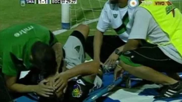 Antes de ser superado, el arquero de Boca salió con todo y bajó al delantero verdinegro con un fuerte golpe que dejó como saldo la expulsión del 1 y la fractura de tibia y peroné en una pierna del uruguayo. informaron desde el cuerpo médico del club de Concepción a la Tv Pública.