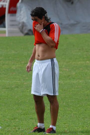 Salvo Ortega, todos los futbolistas se presentaron en el centro de la cancha. El Burrito ni se hizo ver por allí. Luego Astrada dispuso para quienes tuvo enfrente la división del trabajo. Los que jugaron ante Huracán realizaron trabajos regenerativos, los que no, hicieron fútbol. En este último grupo debió estar Ortega.