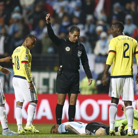 Todo para recriminar. Todo para cuestionar en otra pobrísima muestra arbitral en esta Copa América Chile 2015. Y tuvo nombre y apellido en el mexicano Roberto García. Un juez al que le quedó demasiado grande manejar un partido de cuartos de final con semejante calidad de jugadores. Argentina lo terminó sufriendo porque el juez mexicano le perdonó la vida a no menos de tres jugadores de Colombia que tuvieron que ser expulsados por las reiteradas faltas en cada ataque que insinuó Argentina. En ese primer tiempo, Argentina debió haber sacado esa ventaja al menos en la cantidad de jugadores pero la lamentable producción de García lo privó de sacar luz que habría resuelto todo.