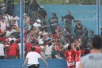 Se sabe que la hinchada de Huracán Las Heras lleva mucho público a los estadios en los que juega su equipo. Es por eso, que a pesar del caluroso clima, más de un centenar de aficionados se acercaron al Estadio 12 de Octubre. Y si bien durante los 90 minutos el encuentro se desarrolló con normalidad, hubo un toque de atención antes de salir de la cancha, como para no romper con la costumbre. Mientras saludaban al equipo ciertos hinchas mendocinos se negaron a salir y la Policía actuó de inmediato. Tal vez eso desató la ira para intercambiar golpes durante unos minutos con los uniformados.