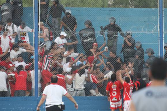 La parcialidad de Unión no fue ajena a los disturbios ya que aprovechó ese encontronazo de los visitantes para agredirlos con algunas piedras.