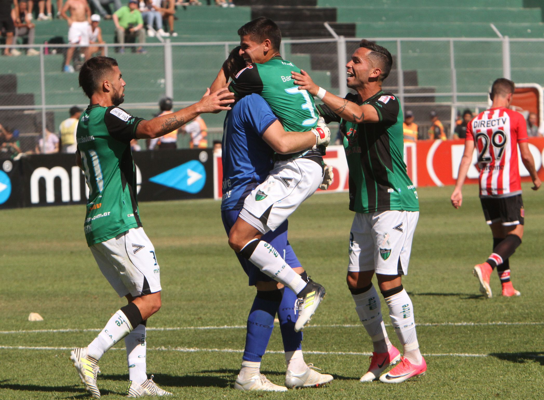 Lo venció. Luis Ardente le dio fuerte en la ejecución del penal y superó la resistencia de Mariano Andújar. Fue el gol del triunfo y lo celebró con Nicolás Mana, Facundo Barcelo y Gabriel Carabajal.