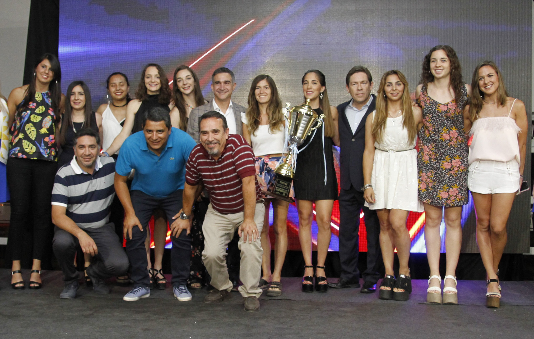 Las campeonísimas del Concepción PC disfrutaron a full la Fiesta del Deportista del Año. De pie (de izq. a der.): Gabriela Moreta, Erika Soria, Lourdes Araoz, Milagros Carrera, el intendente de Capital Franco Aranda, Luciana Agudo, Pamela Burgoa, el presidente del club Alberto Martínez, Eliana Vera, Florencia Felamini y Anabella Flores. Hincados: Franco Chancay (kinesiólogo), Martín Riveros (PF) y Guido Carbajal (médico).